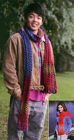 Kit includes enough yarn for a long scarf, needles and free pattern.